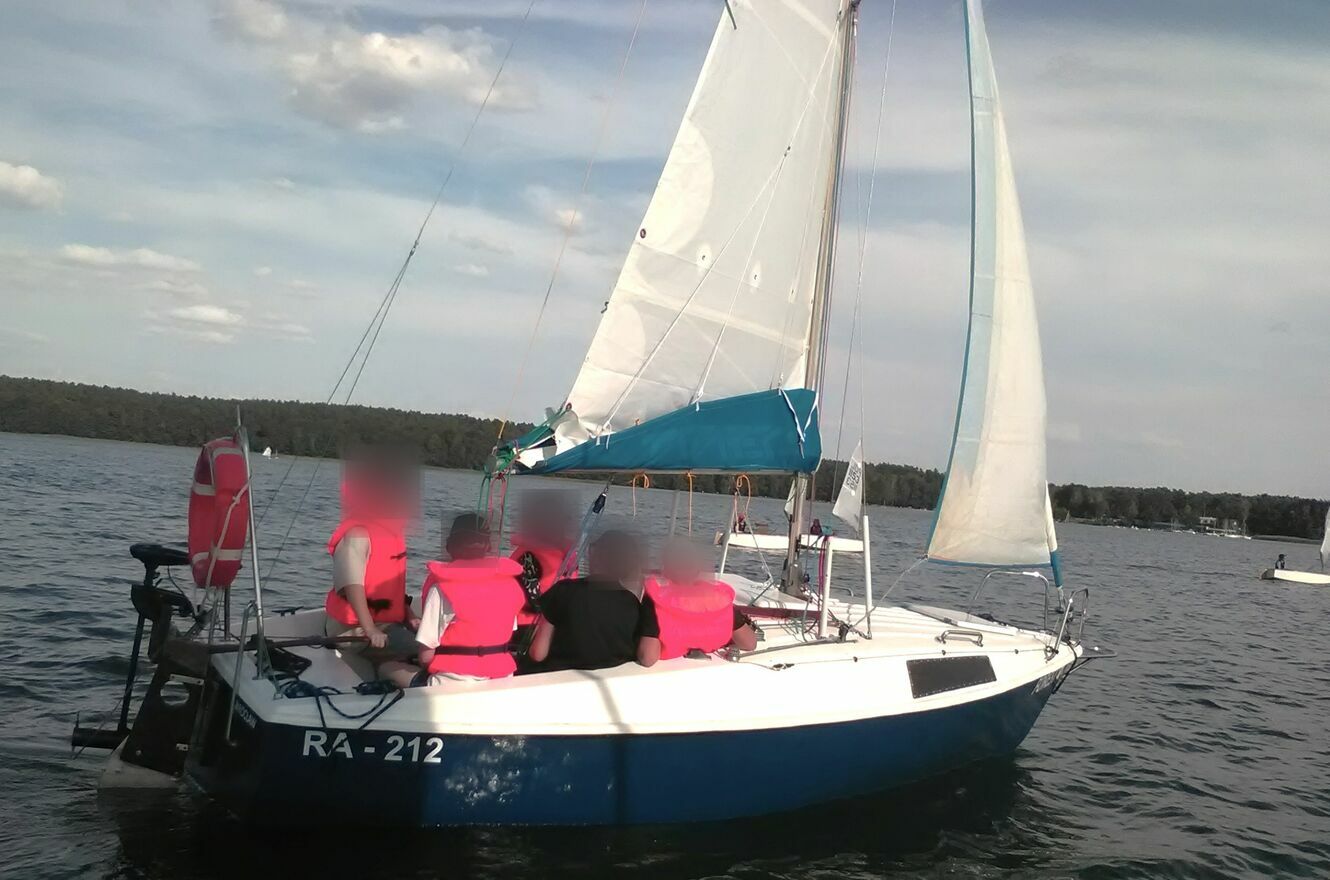 W wyposażeniu dwa wiosła, cztery kamizelki, koło ratunkowe i kotwica.